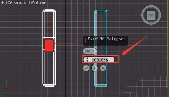 9、點擊extrude命令,調(diào)節(jié)擠出參數(shù)值為100,如圖所示: