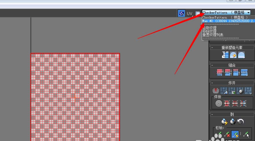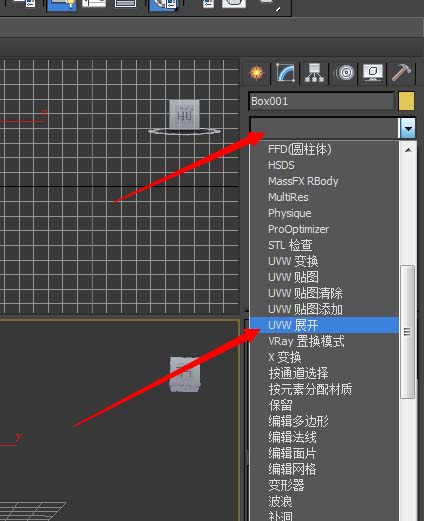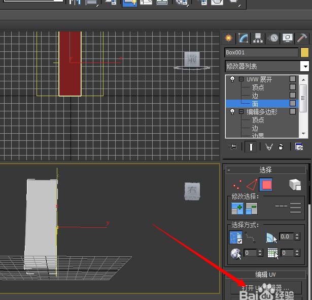 4、這樣,我們接下來在選擇修改器那選擇 UVW展開 ,選中后,先不用操作其他參數(shù),直接點擊 打開UV編輯器 這個按鈕在下面。