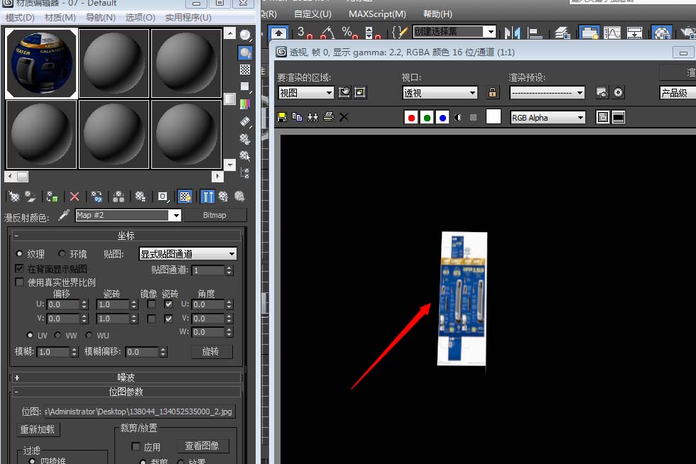 2、打開材質(zhì)球,在漫反射后面的小按鈕中選擇位圖,找到你選擇的包裝盒的圖片,確定。