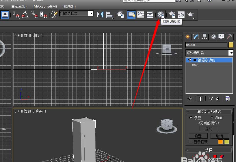 1、打開3DMAX2012,做一個長方體,大小適合包裝盒的貼圖,我建立的是30*30*90mm的。然后選擇編輯多邊形模式。