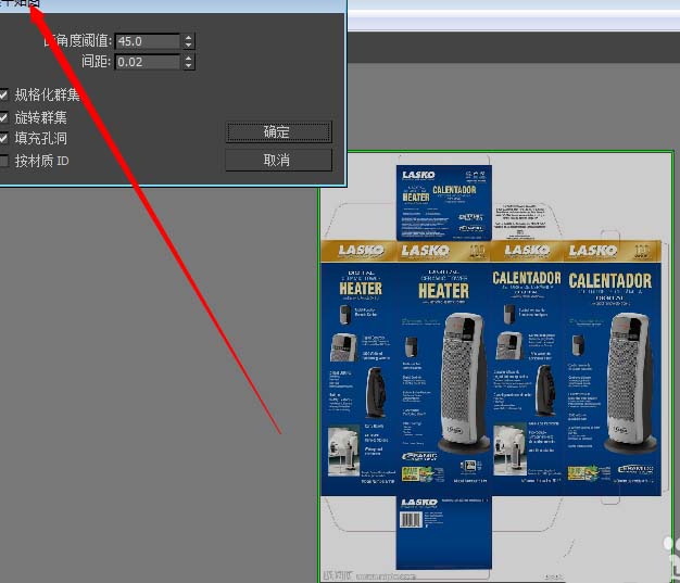 6、接下來,點擊左上角的 貼圖 ---展開貼圖,參數(shù)不用改,直接確定,如果展開貼圖一項為灰色不可用狀態(tài),請選擇下面的多邊形狀態(tài)。