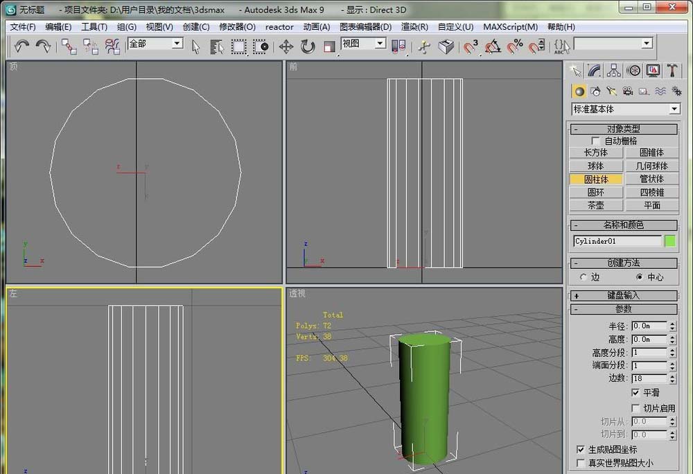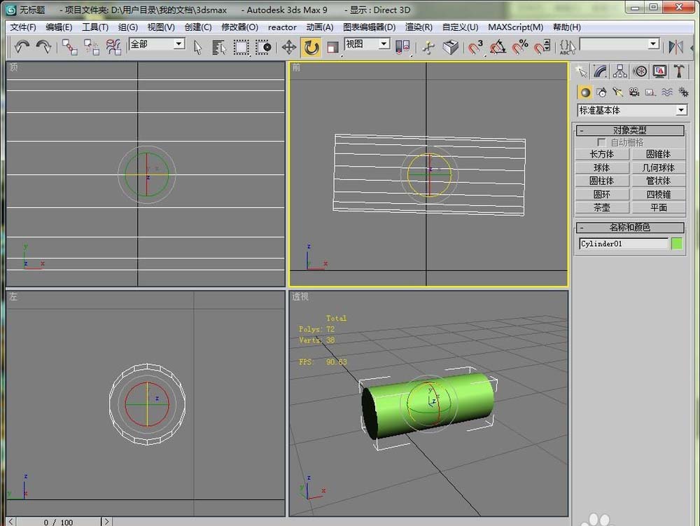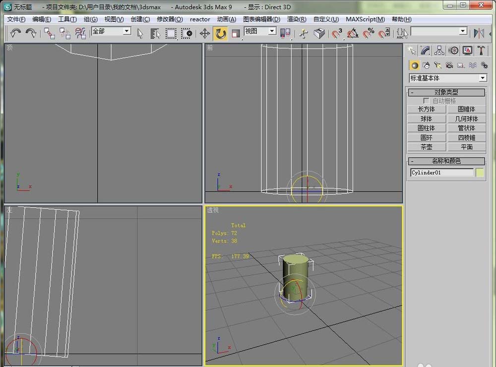 2、然后在視圖區里畫一個圓柱,我們現在的目是把這個圓柱體變成橫著的。
