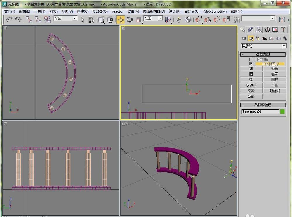 12、然后在前視圖里畫一個矩形,做好就是梁。