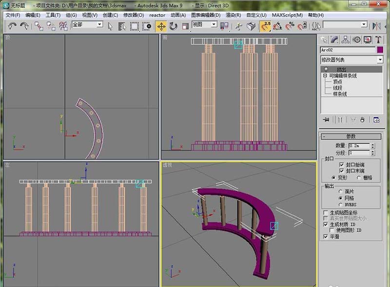11、給這個圓弧加載一個擠出修改器,設置一個擠出高度