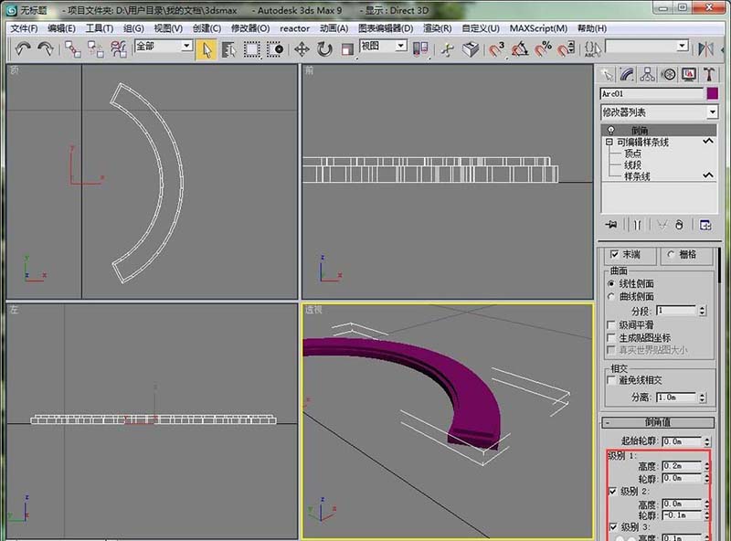 5、給這個弧形,添加一個倒角修改器