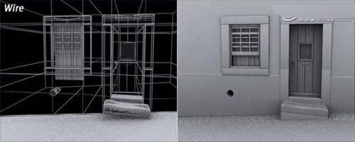 最難制作的部分是人行道,我必須制作一張置換貼圖并且將這張貼圖賦給高精度的平面網格物體,這會使文件變大、渲染變慢,而且這張貼圖并不能與人行道旁邊的墻體相匹配,因此我必須多次進行修改,直到得到滿意的效果為止。(這部分內容請看教程的貼圖部分)。