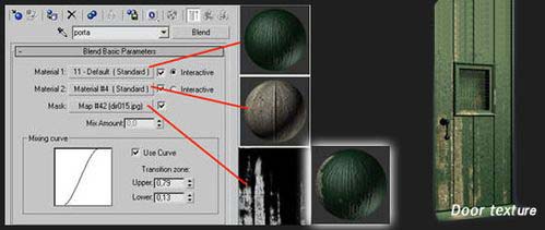 房門:再次使用了Blend(混合)材質,因為時間的原因房門已經被腐蝕了,給它指定一張Dirt(污垢)貼圖作為蒙板就完美了。