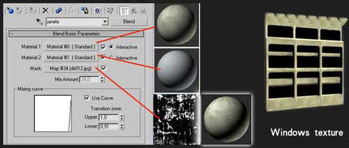 窗戶:簡單的Blend(混合)材質,這些材質看起來很相似,我希望得到一種更加光滑的混合效果,還要帶有一些污垢蒙板區域。