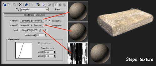 臺階:對于這個物體,我使用了3ds Max中的Blend(混合)材質,因此它的紋理并不復雜。