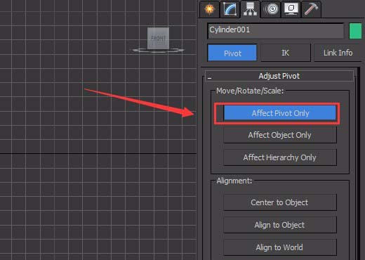 3、選擇創建的cylinder,在右側的hierarchy下的adjust pivot里的affect pivot only選項,如圖所示: