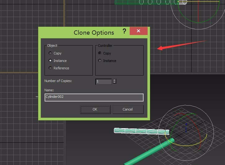 6、選擇這個圓柱體,按鍵鍵盤上的E鍵,轉換為旋轉狀態,再按下鍵盤上的SHIFT鍵彈出clone option窗口,如圖所示: