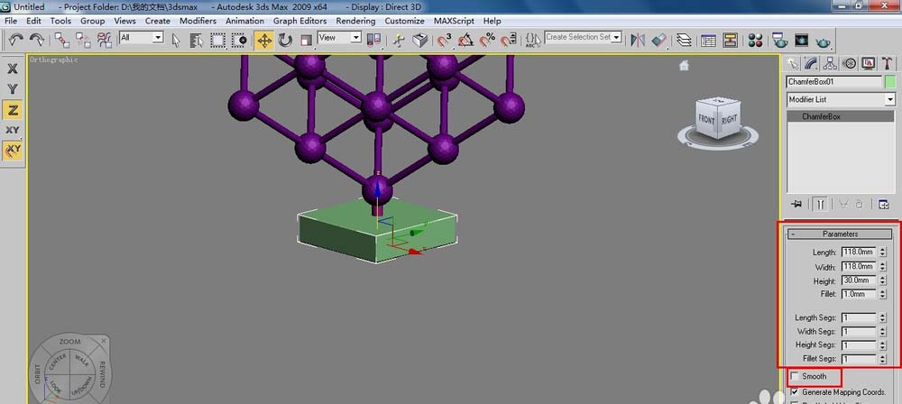 1、單擊(創建)/(幾何體)/【Box】(長方體)按鈕,在前視圖中單擊并拖動鼠標創建一個長方體,修改參數。