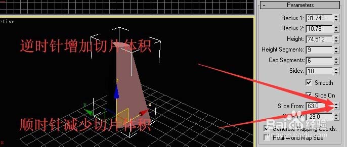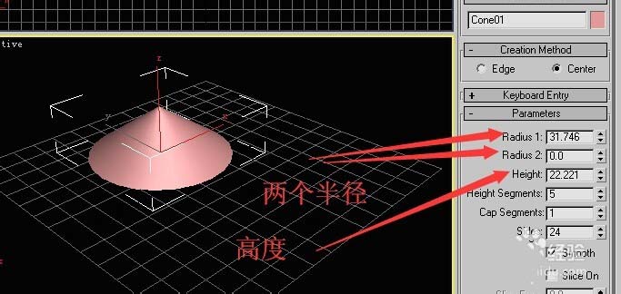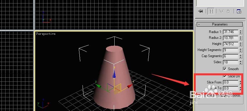2、通過拖拽,和在面板上調整三個參數,三個參數是第一個半徑,和第二個半徑,還有高度