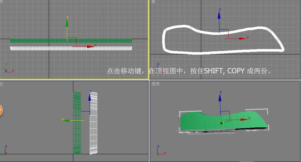3、點擊移動鍵,在頂視圖中,按住shift,copy成兩份。