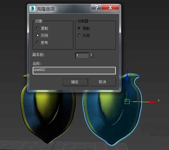 3、復制物體:按住”Shift“后再移動物體,會彈出復制類型選單,其中用”實例“選項獲得的物體會隨源物體的改變而改變。復制功能一樣適用于點等多邊形編輯單元的復制。(復制功能也可以在菜單欄和右鍵選單中選擇”克隆來實現“)