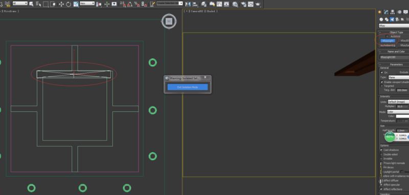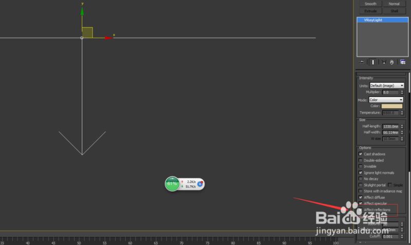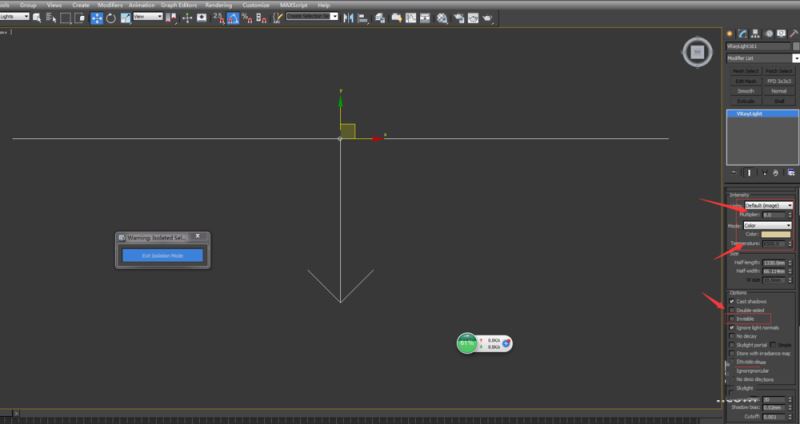 四:當燈帶都打好后需要渲染小圖測試一下光感,前期最好不要太亮,如果太亮了就要更改燈光參數。選中燈,在右邊修改面板找到燈光倍增與顏色,按照自己理想的來改,勾上下面燈光的不可見invisible,必要的時候還要去掉下面影響反射。