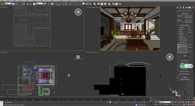 二:切換視窗后,以頂視窗與攝像機視窗顯示,影藏攝像機,不要動到攝像機視圖,一般操作在頂視窗。