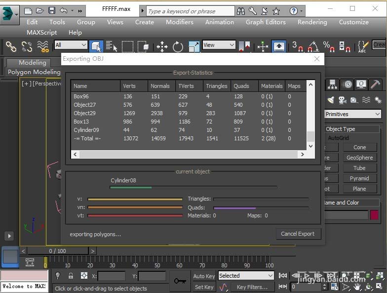 10、然后就可以看到軟件在導(dǎo)出模型了,我們等一會,等所有的進(jìn)度條都加載好了,我們將窗口叉掉就行了。