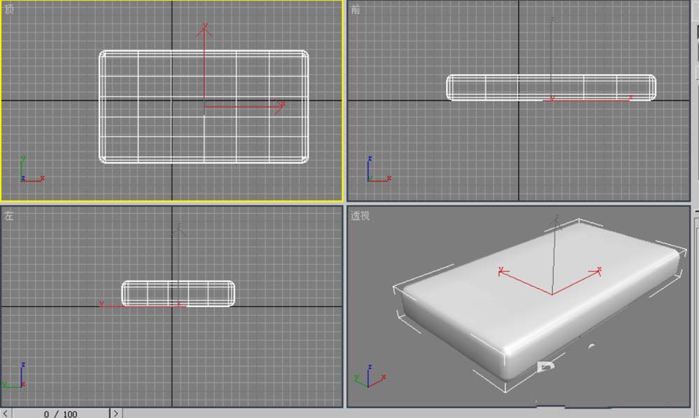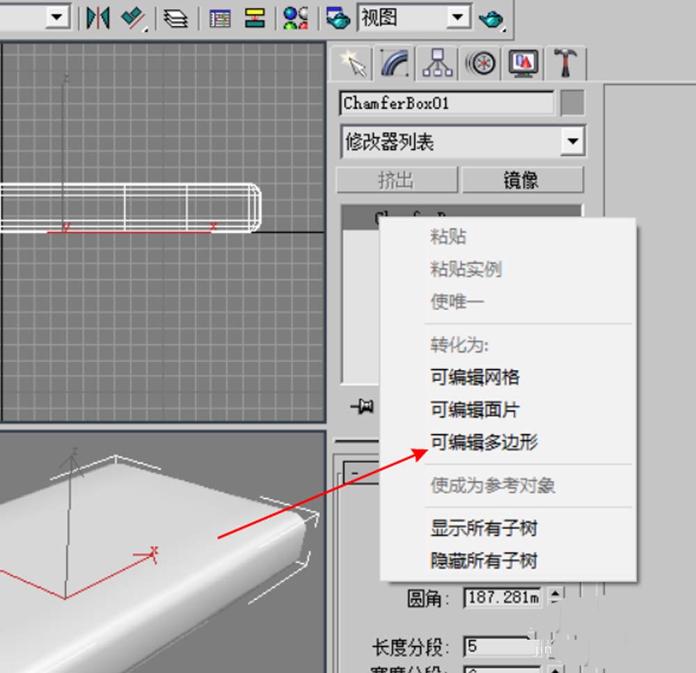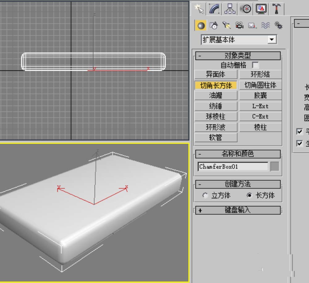 1、打開3dmax,創建一個切角長方體,對長方體的長和寬進行適當的分段。
