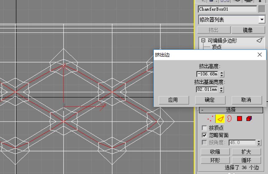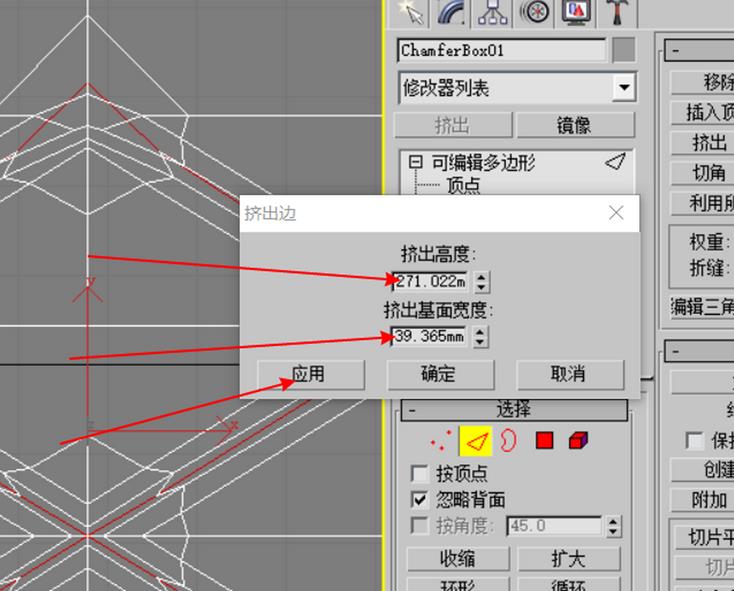 8、點擊應用,將擠出高度調大,將擠出基面寬度調小,點擊確定。