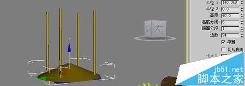 2、選中圓柱體。在長方體頂端拉出圓柱體,半徑:5,高:300