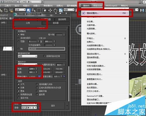 6、在菜單欄中選擇【渲染】-【渲染設置】命令,或者直接按鍵盤上邊的F10,打開渲染設置對話框,在公用選項卡中將輸出大小設為1200,將查看設置為【前】,如下圖所示,最后單擊【渲染】按鈕,即可得到倒角的文字效果咯