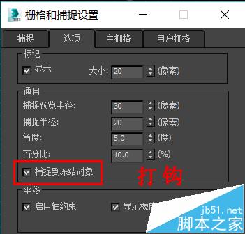 2、彈出的對(duì)話框里,勾選“捕捉到凍結(jié)對(duì)象”。