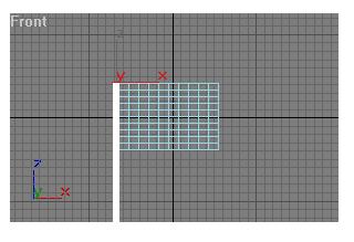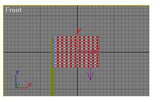 3、設置紅旗飄動的效果。在紅旗飄動時,并不是整個作為紅旗的面都在動,與旗桿相接的一列點并沒有動,因此我們給作為紅旗的平面加入一個物體編輯選項,首先選取平面對象plane01,點取modify進入修改命令面板,點取命令面板上的modifier list選項右側的下拉菜單,在彈出的下拉列表中選擇mesh select選項,再點取命令面板上的vertex選項,選擇如下圖所示的頂點。