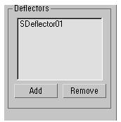 9、我們來把剛制作的這段動畫加入到對紅旗飄動的影響中,在場景中選擇紅旗物體,單擊modify進入修改面板,在修改面板的下面deflectors項的下面,單擊add鈕,在視圖中單擊我們創(chuàng)建的導向板對象sdeflector01,把導向板的動畫影響加入到場景中,如下圖所示: