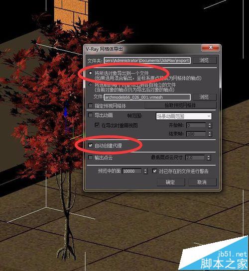 6、選擇 [將所選對象導(dǎo)出到一個文件],打勾 [自動創(chuàng)建代理],電腦可能會停頓一會兒,耐心等待