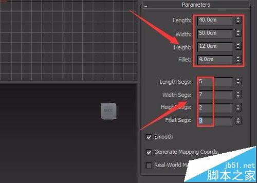 5、選擇剛剛創建的chamferbox物體,在modify里修改參數如圖所示:
