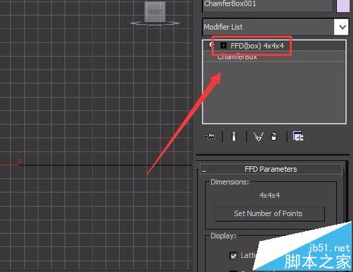 6、再次選擇修改后的物體,在modify里給其添加FFDbox命令,如圖所示: