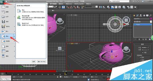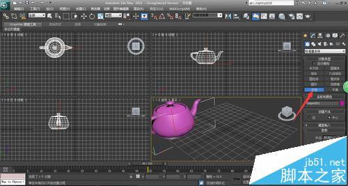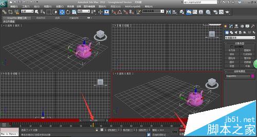 4、接著點(diǎn)擊【自動(dòng)關(guān)鍵點(diǎn)】,然后拖動(dòng)箭頭處的橫條到第41幀,然后可以移動(dòng)茶壺的位置(為茶壺添加一個(gè)移動(dòng)的從近到遠(yuǎn)的動(dòng)畫(huà))。