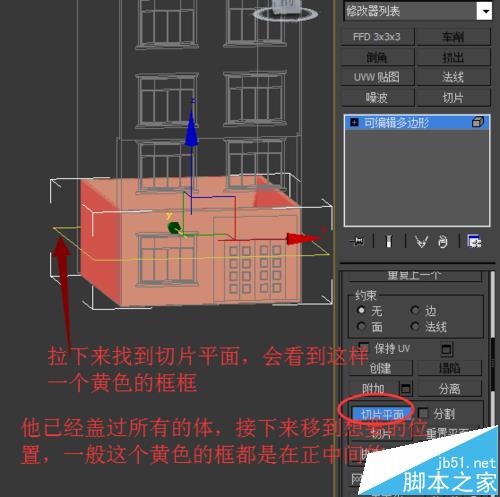 3、調(diào)整好位置后,點(diǎn)擊切片平面下方的“切片”按鈕即切片成功,可點(diǎn)擊多邊形,選擇物體發(fā)現(xiàn)切片成功。這個(gè)方法可以讓同一個(gè)物體有不同的貼圖