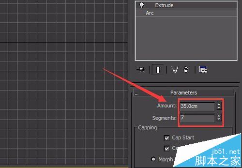 6、點擊extrude修改器在其修改區域里修改參數如圖所示: