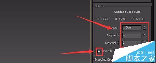 9、再次在lattice修改器的選擇區域里找到joint選項,調節joint的參數如圖所示: