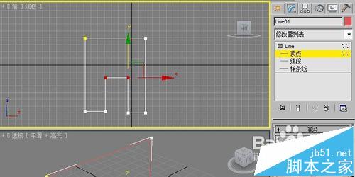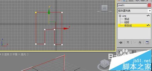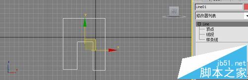 1、打開3dmax2010軟件,在前視圖上繪制一個門的輪廓線。如下圖所示: