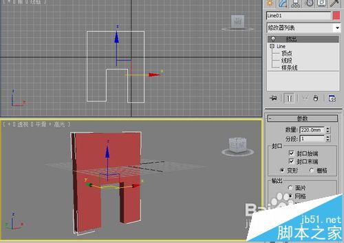利用線條工具和擠出命令來完成立門模型。