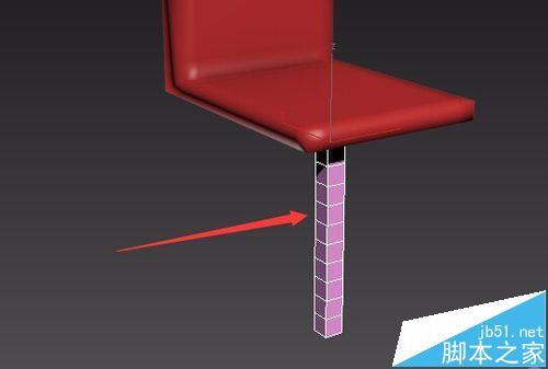 11、選擇創建的box,單擊鼠標右鍵選擇convert to editable mesh,按下數字4鍵,進入多邊形層級,在透視圖里選擇下面的一個面,找到bevel命令,設置其值為5,依次進行bevel操作10次,椅子腿就制作好了,如圖所示: