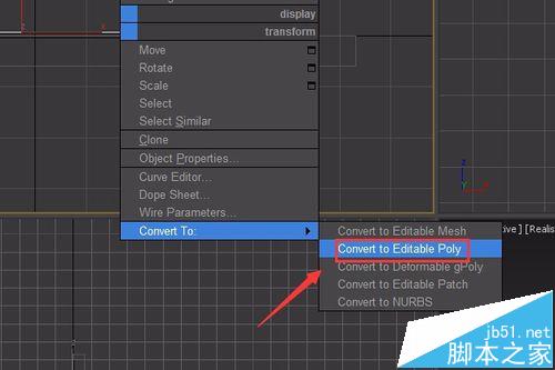 10、選擇屏幕這個物體,單擊鼠標右鍵,在彈出的菜單里找到covert to選項,在convert to選項的子級菜單里找到covert to editable poly命令,如圖所示: