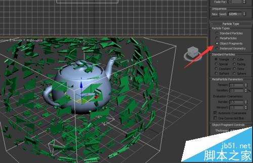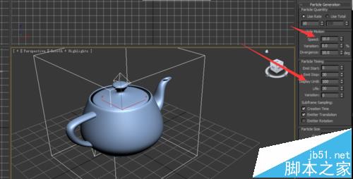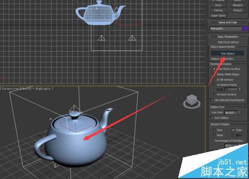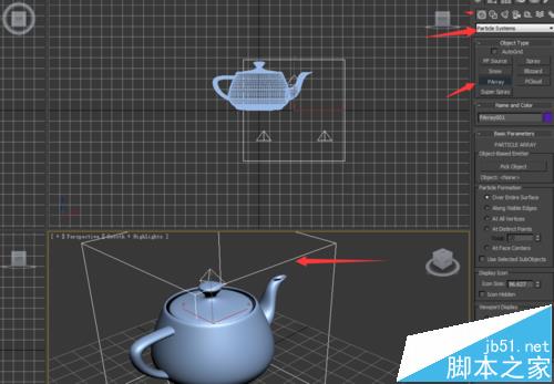 2、我們在粒子系統中找到parray,創建到茶壺上面!
