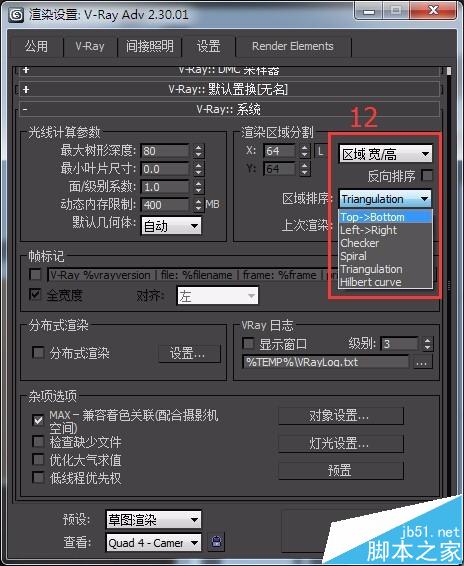 8、在下面是,渲染區(qū)域分割設(shè)置,區(qū)域排序,可以選擇從上到下、從左到右或者其他,如下圖