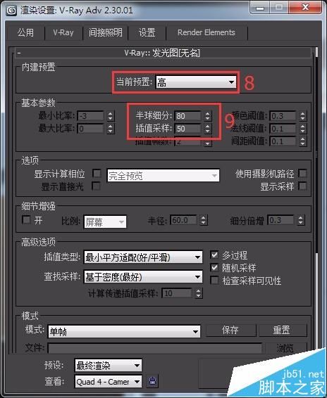 5、下面,發(fā)光圖——當(dāng)前預(yù)置中選擇低——半球細(xì)分80——插值采樣50,如下圖