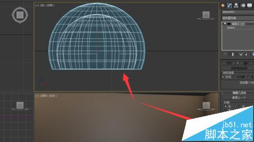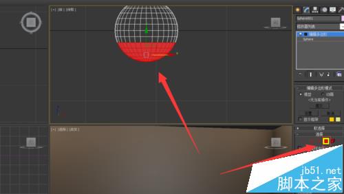 2、選中所繪制的球體,進入修改器列表,選擇“編輯多邊形”修改器,進入面子物體級別,刪除如圖所示的面;