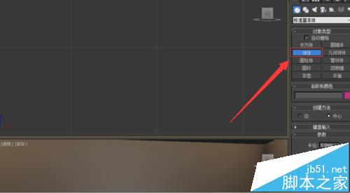 1、運行軟件,選擇“標準基本體”下的球體,在頂視圖中繪制球體;