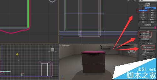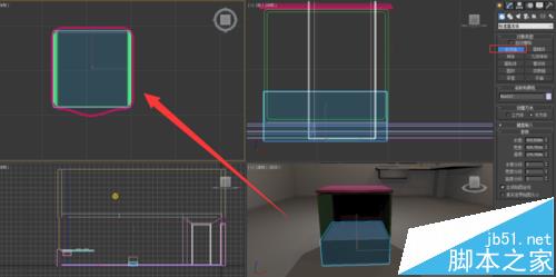 4、選中修改后的矩形,在編輯修改器卷欄下選擇“倒角剖面”修改器,并拾取所繪制的截面,完成床頭柜的頂蓋繪制;