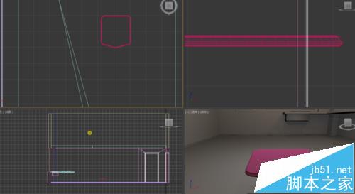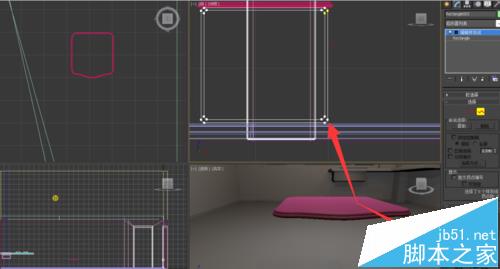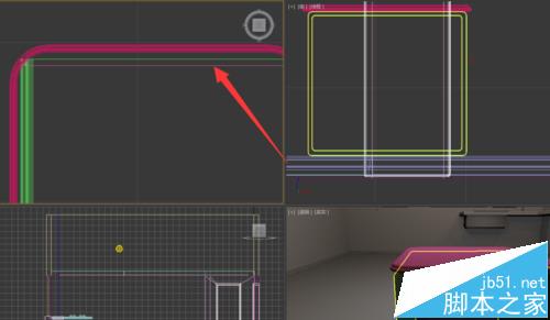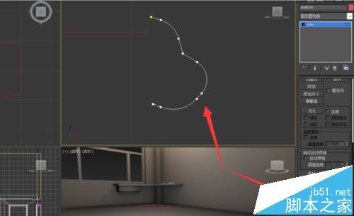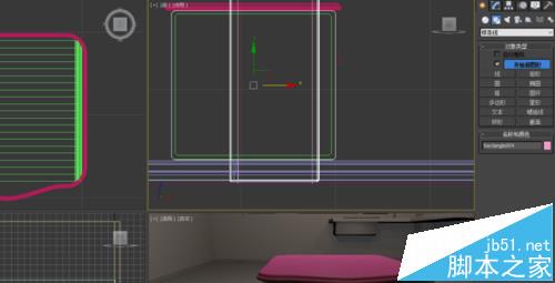 3、使用樣條線的“線”工具,在前視圖繪制床頭柜的邊緣截面形狀;