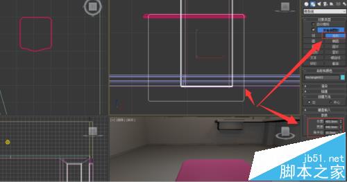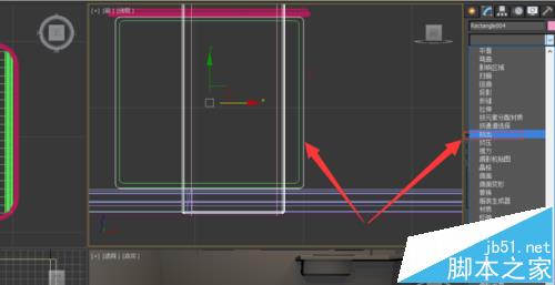 5、選擇矩形工具,在前視圖中繪制2個(gè)矩形,并調(diào)整參數(shù)及位置;