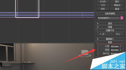 8、再繪制一個(gè)矩形,調(diào)整參數(shù)如上并使用“擠出”修改器,生成床頭柜的后壁;