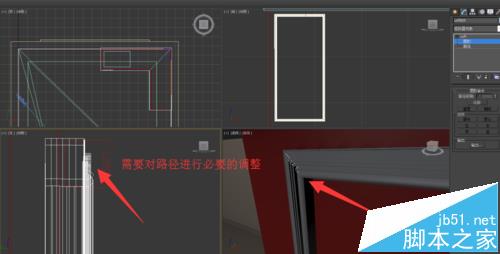 6、選中櫥柜門的輪廓線,選擇復合對象下的放樣按鈕,并拾取圖形(裝飾橫截面的輪廓),對路徑進行必要的調整,完成櫥柜門外部修飾邊制作;